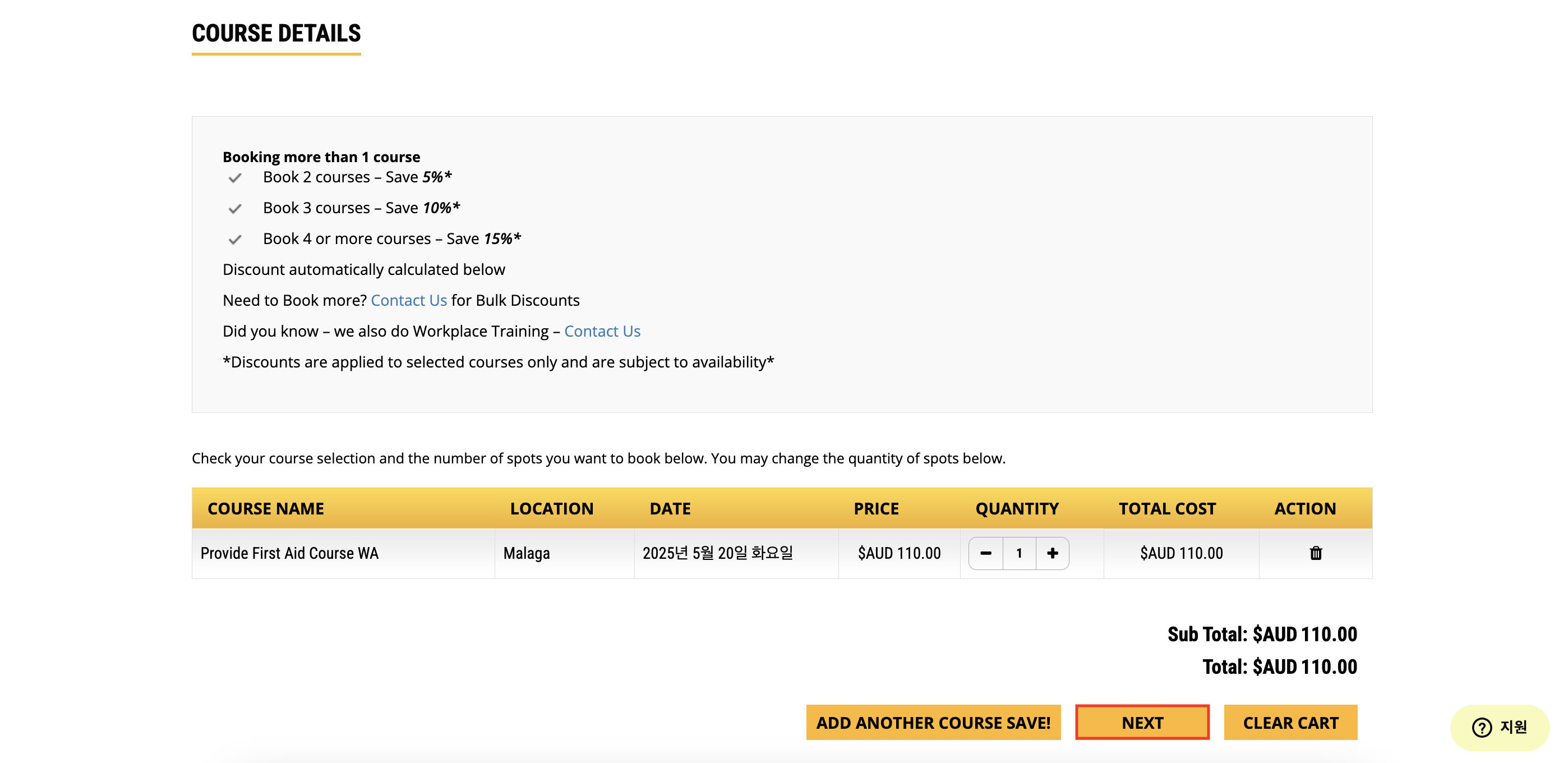 - First Aid 전체 과정 신청 시 $100~$150