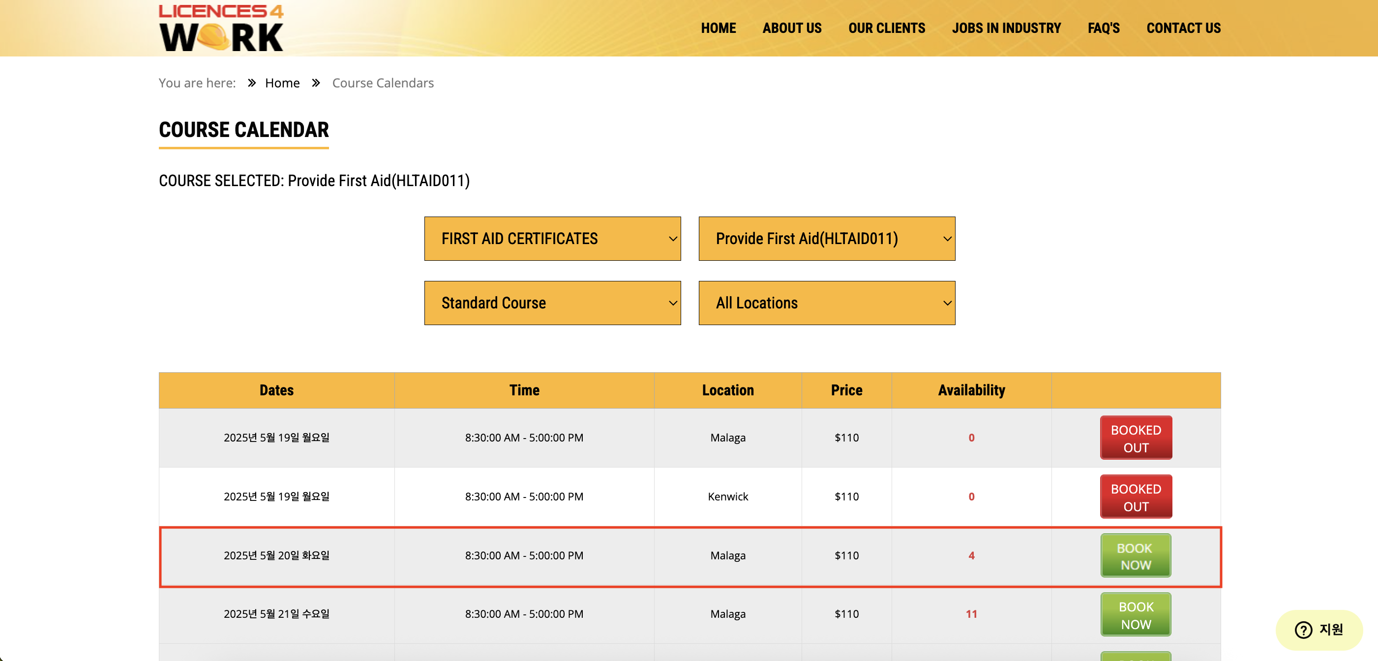 ![]() 'First Aid Certificates' 신청 |