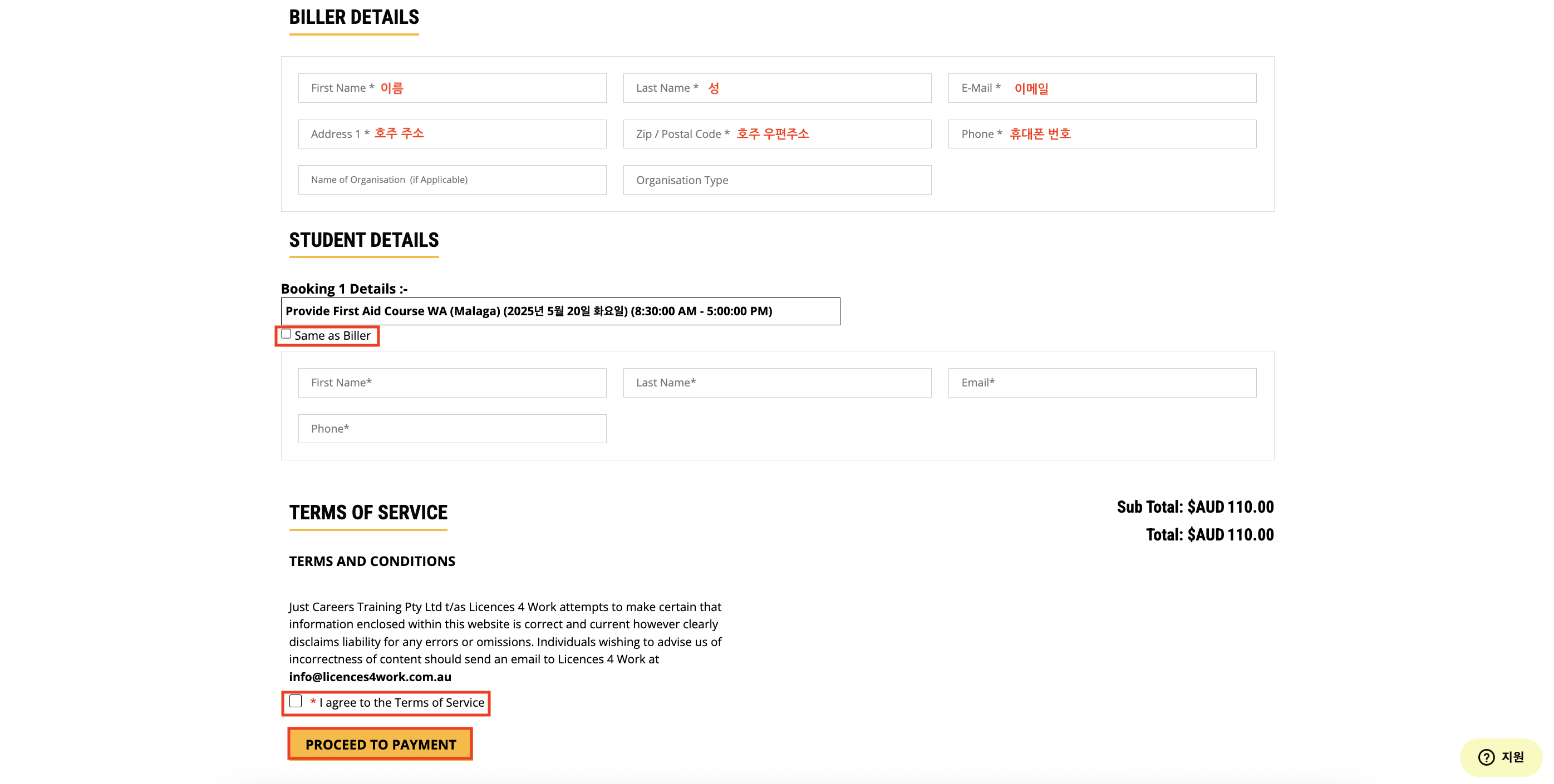 ![]() 개인정보 입력 후 'Proceed to Payment' 클릭 |