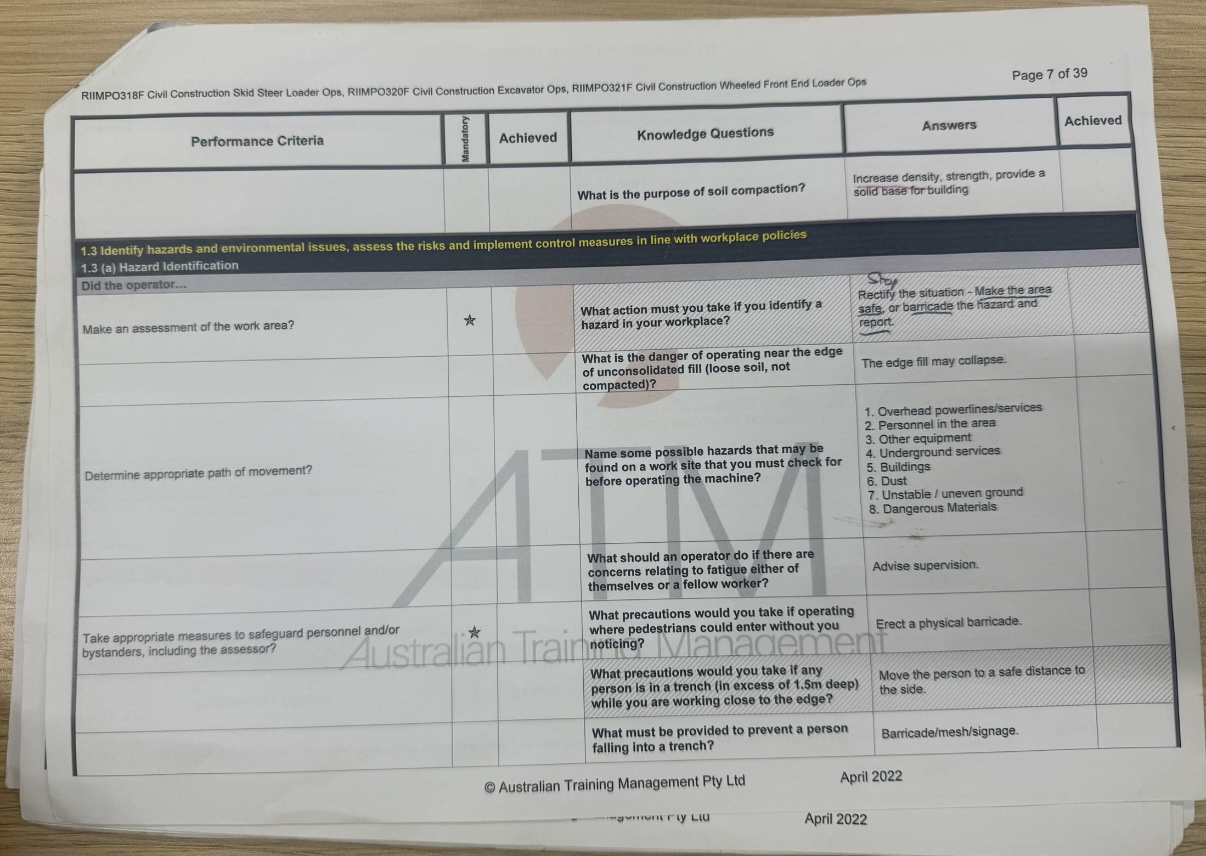 | Combined Course | RIIMPO321F - Front-end Loader RIIMPO320F - Excavator RIIMPO318F - Skid Steer Loader |
