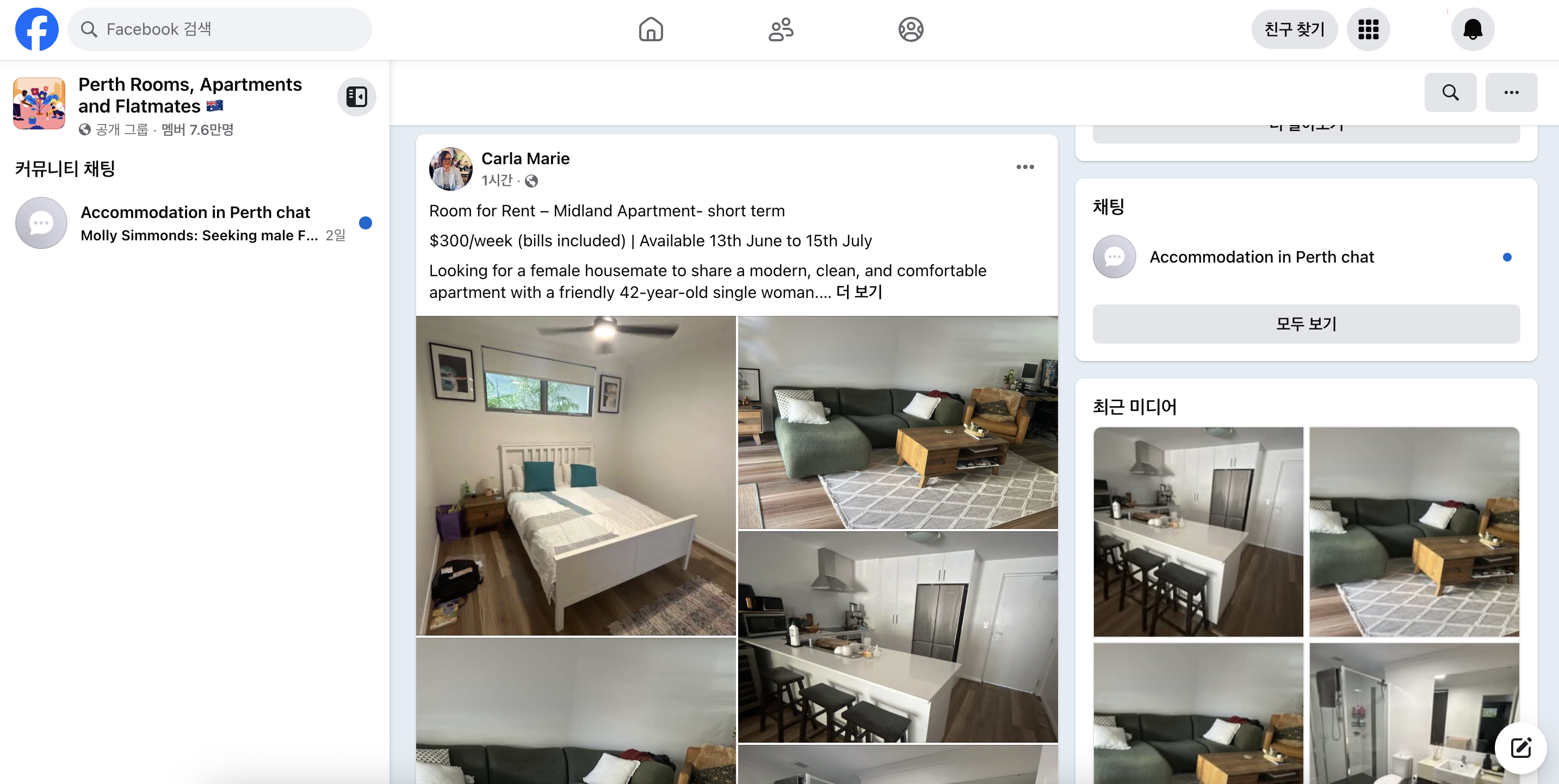 - 대부분 한인 커뮤니티, Facebook, Flatmates, Gumtree 등을 통해 구할 수 있습니다.