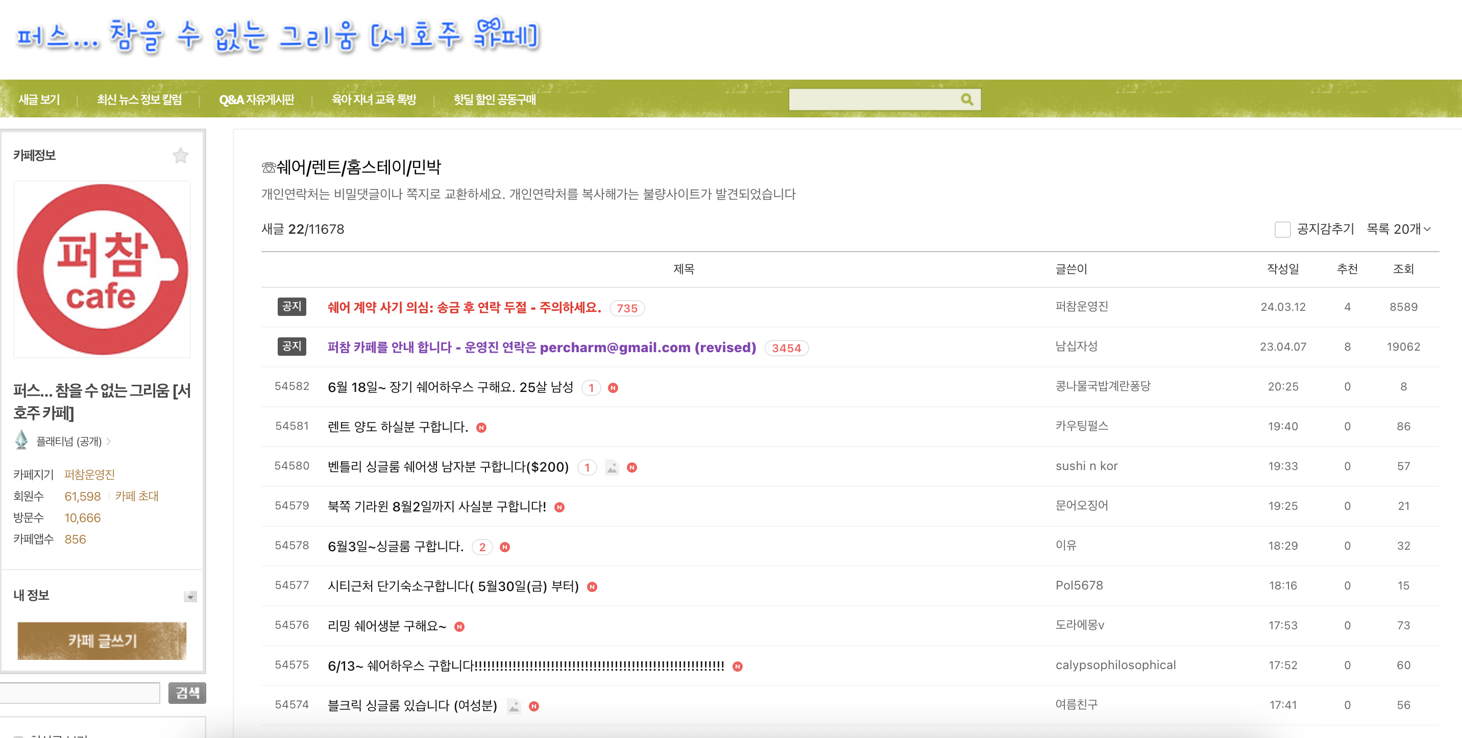 - 장점: 중고 거래부터 쉐어하우스까지 다양한 광고 존재, 집주인과 직접 연락 가능