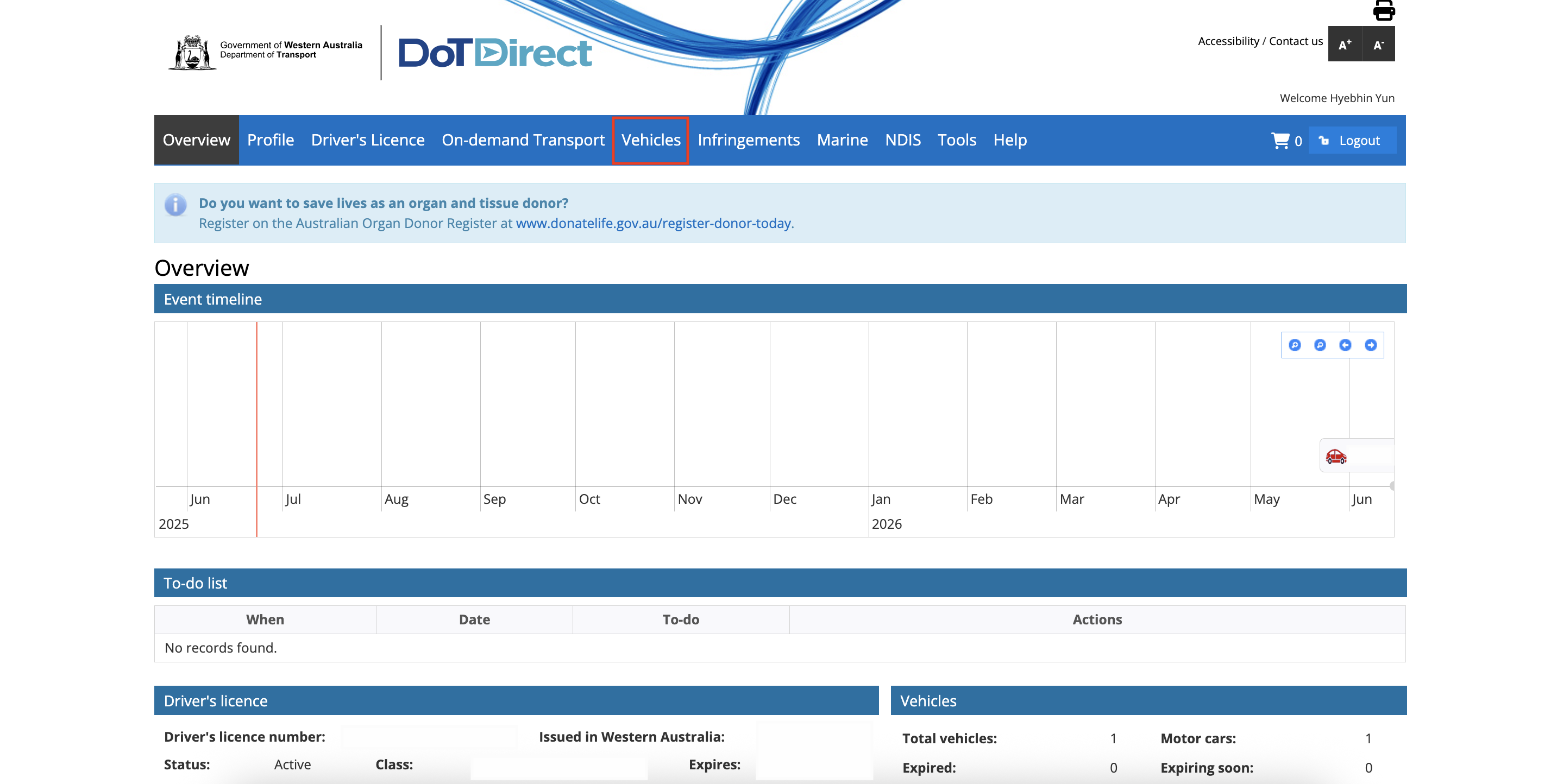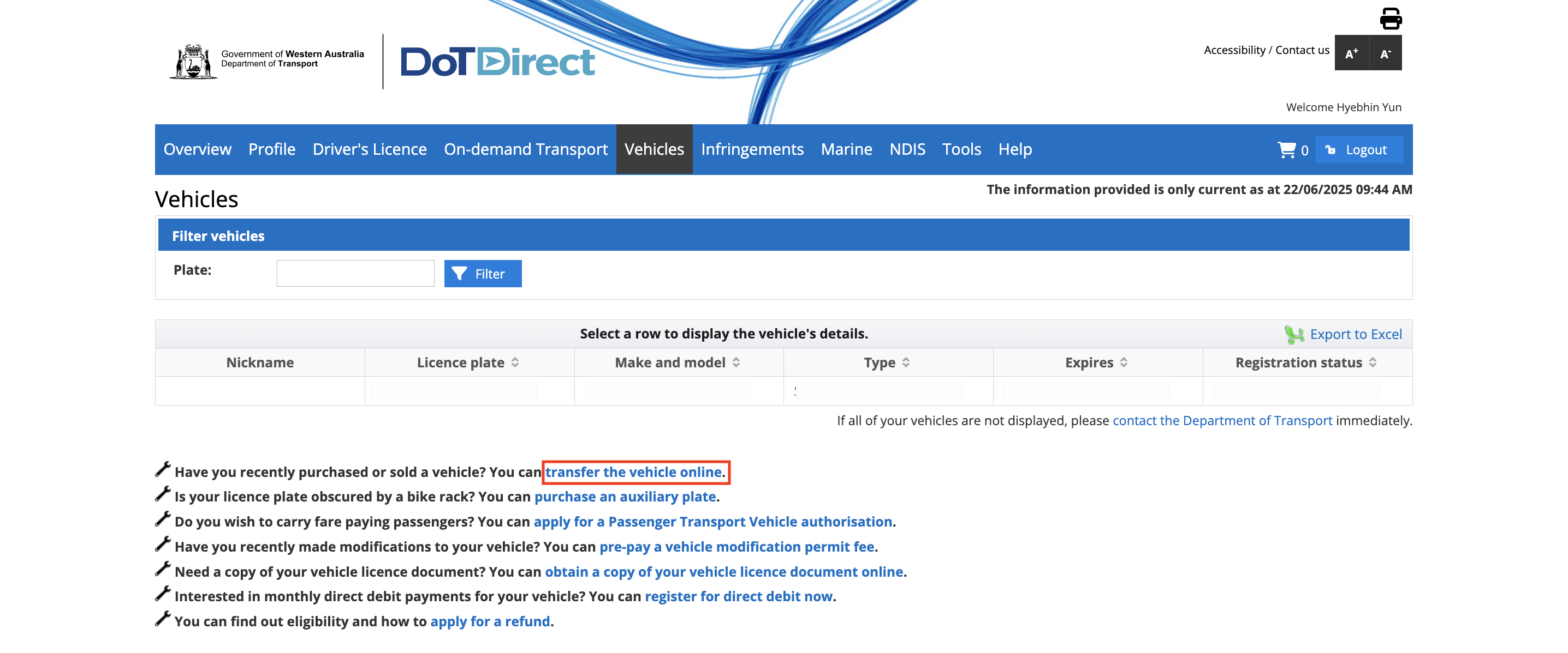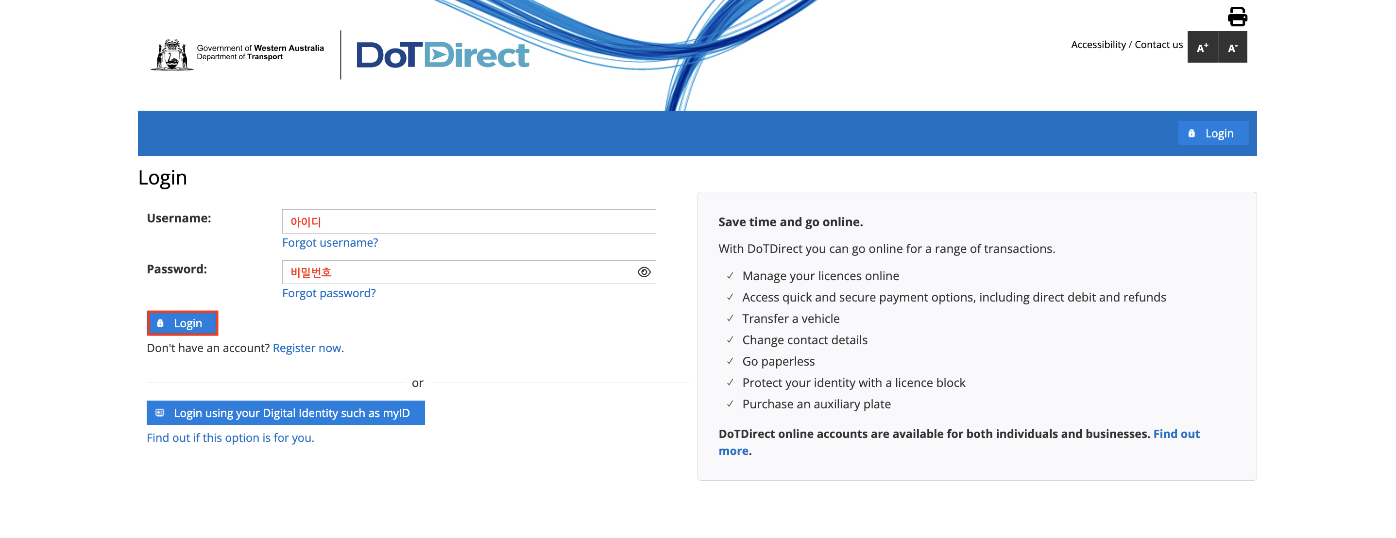 서호주에서는 WA 정부의 DOT(Department of Transport) 웹사이트를 통해 온라인 명의이전이 가능합니다.