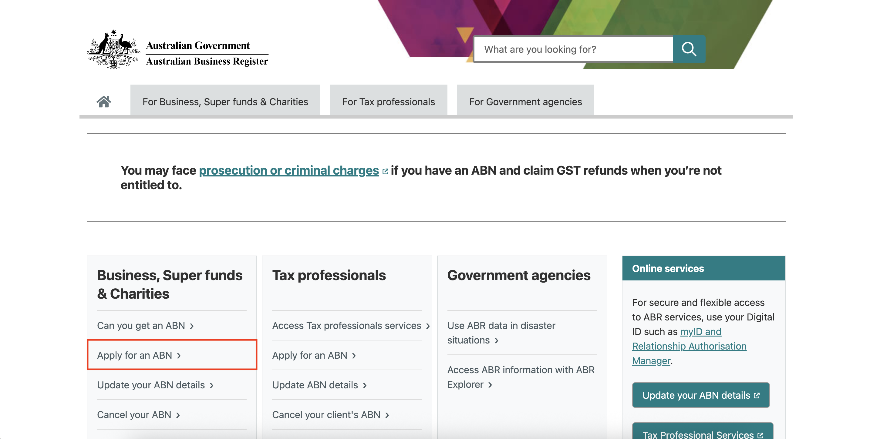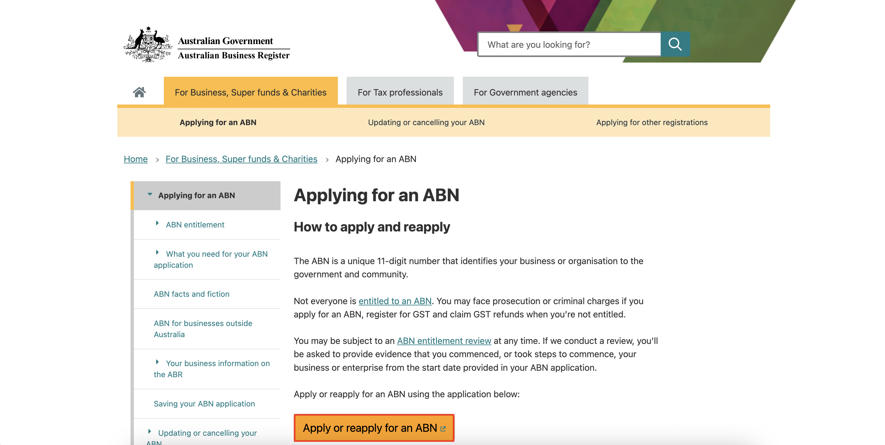 ABN 공식 웹사이트 : https://www.abr.gov.au/