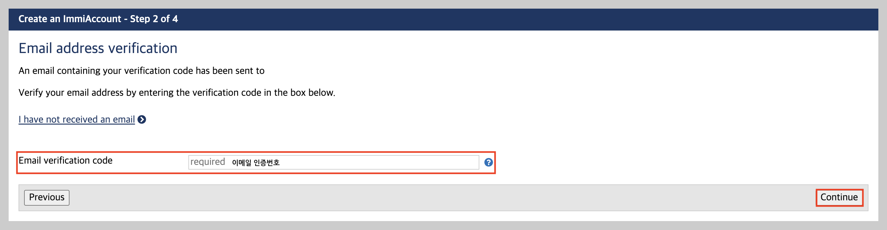 이메일 인증번호 입력 > Continue 클릭