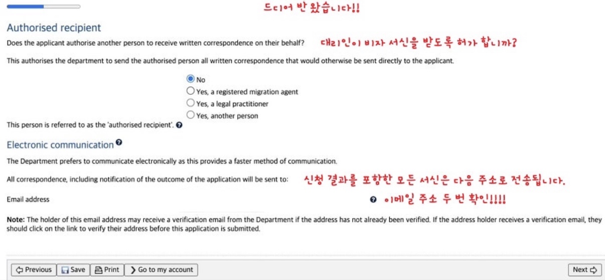 * 한가지 Tip으로 호주 이민성 아이디와 비밀번호 그리고 비밀번호를 잃어버렸을 때 찾을 수 있는 질문과 답변 3가지는 꼭 메모해두세요.
