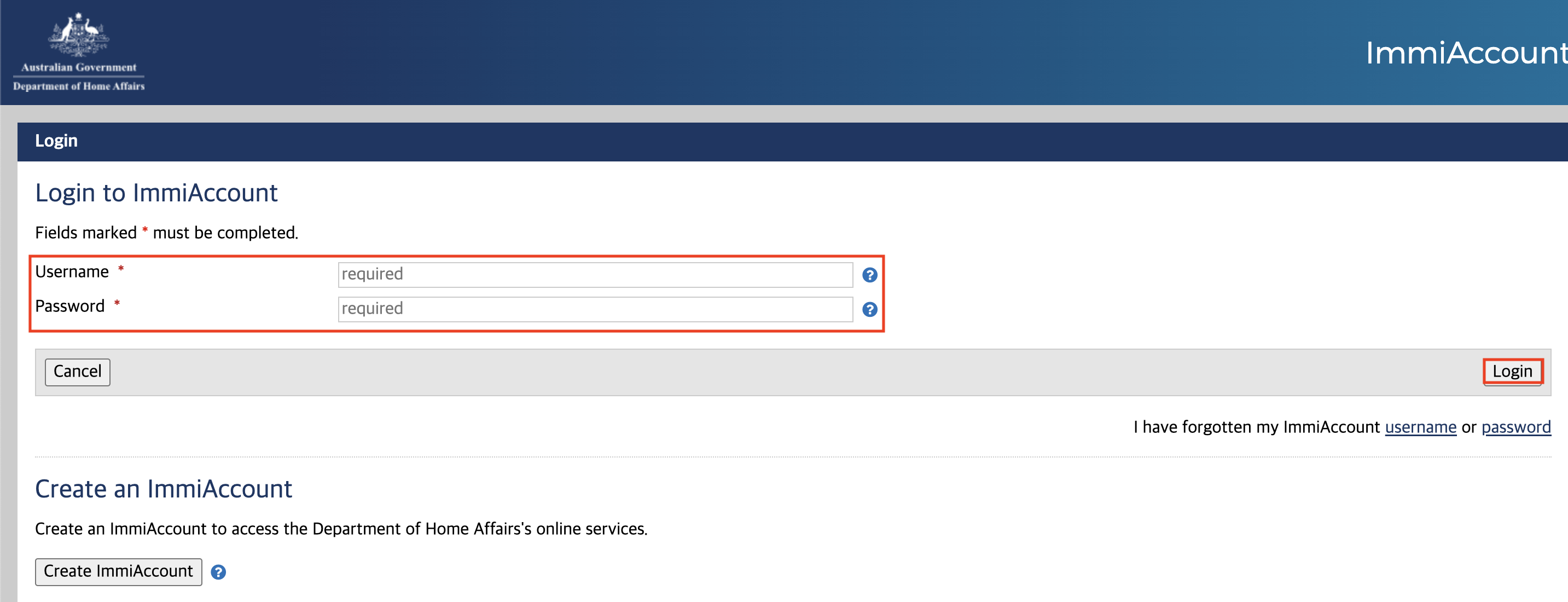 이민성 사이트에서 'ImmiAccount' 클릭