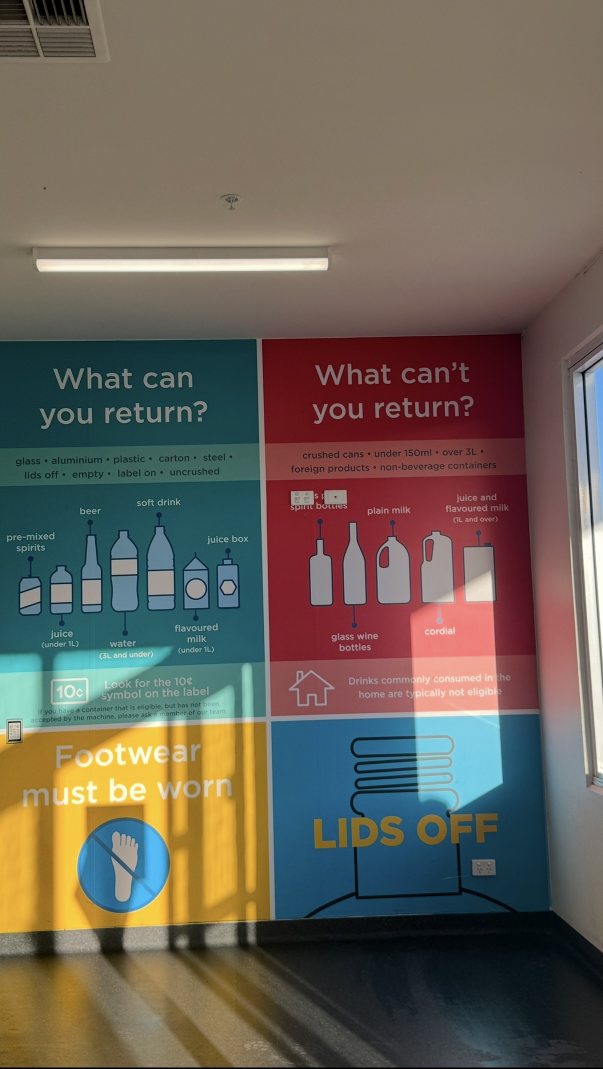 한국에서는 재활용품을 버리면 특별한 보상을 받지 않는 경우가 많지만, 호주에서는 정부가 적극적으로 참여를 유도하기 위해 이렇게 금전적인 인센티브를 제공합니다. 프로그램에 참여할 수 있는 용기는 보통 플라스틱, 알루미늄, 유리병, 우유팩 등으로, 제품에 ‘10c Refund at Collection Depots’ 같은 문구가 적혀 있거나 Containers for Change 로고가 표시되어 있는지 확인하면 됩니다. 다만, 와인병이나 우유팩 일부 등은 해당되지 않으니 미리 분리해서 모아두는 습관이 필요합니다.