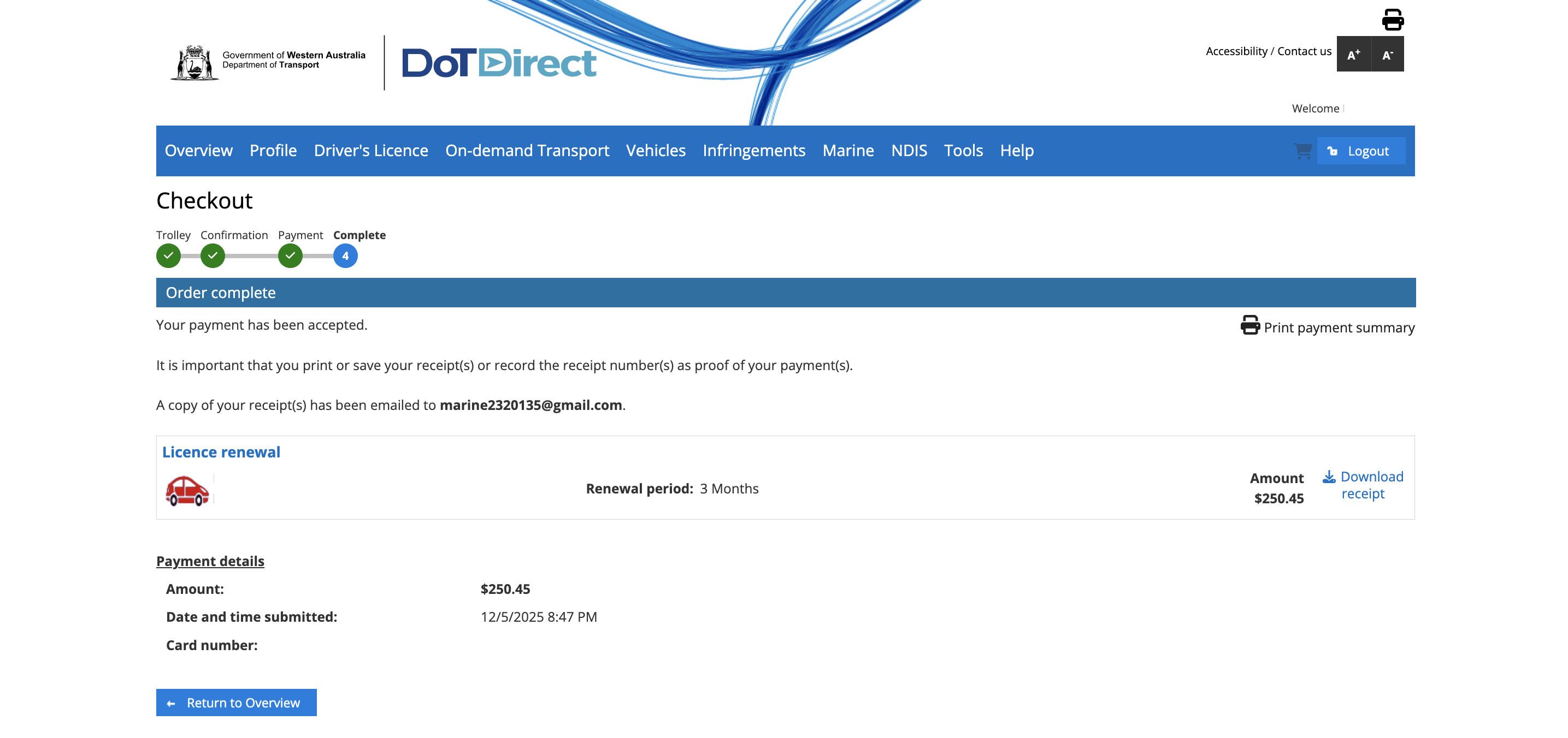 - 호주는 차량 등록이 주정부별로 관리되며, WA(서호주)의 경우 DOT(Demartment of Transport) 웹사이트를 통해 연장 가능합니다.
