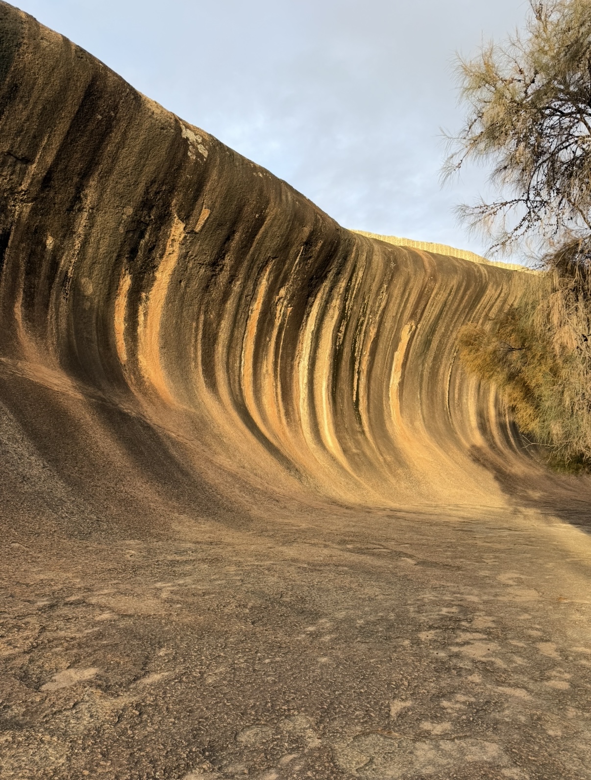 웨이브록은 이름 그대로 거대한 파도가 땅 위로 밀려온 듯한 형태의 화강암 바위로, 마치 누군가가 거대한 붓으로 곡선을 그려 놓은 듯한 장엄한 모습을 자랑합니다. 수천만 년의 침식과 풍화 작용으로 탄생한 이 바위는 그 형상만으로도 압도적인 아름다움을 뽐내며, 매년 수많은 방문객을 끌어들이는 서호주의 대표 자연 명소 중 하나입니다.