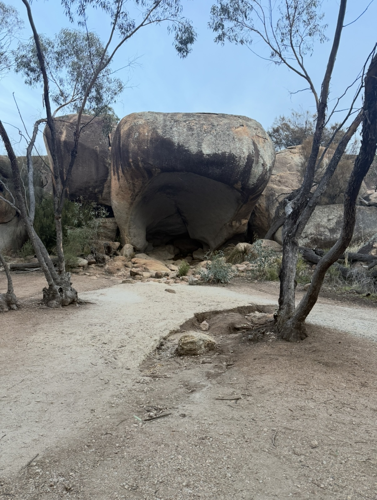 바로 근처에 위치한 Mulka’s Cave는 원주민 전설이 깃든 신성한 장소로, 동굴 벽면에는 약 450개 이상의 원주민 손자국이 남아 있어 호주의 고대 문화와 역사를 느낄 수 있습니다. 동굴 내부에는 해설판과 안내문이 잘 정비되어 있어, 원주민 신화 속 ‘Mulka’의 이야기를 이해하며 둘러볼 수 있습니다. 웨이브록과 더불어 자연 경관과 문화유산을 함께 체험할 수 있는 소중한 탐방지입니다.